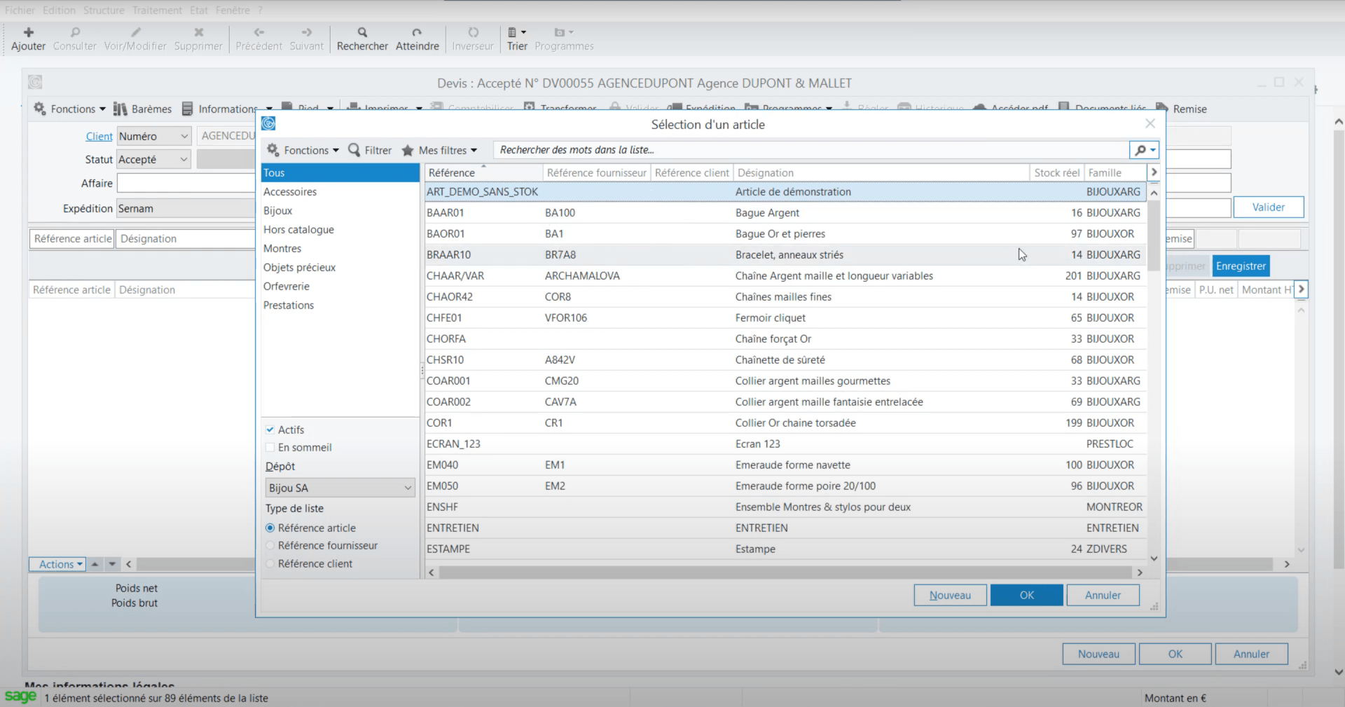 Le module de Gestion d'Affaires est lié à la Gestion commerciale.